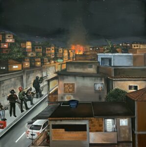 Nascido em Honório Gurgel e criado no Complexo do Chapadão, JOTA construiu sua linguagem artística a partir do território. Autodidata, tornou-se conhecido por retratar o cotidiano da comunidade onde cresceu, misturando cenas de festas populares, churrascos, brincadeiras infantis e encontros nas ruas com a tensão dos conflitos sociais e territoriais.
