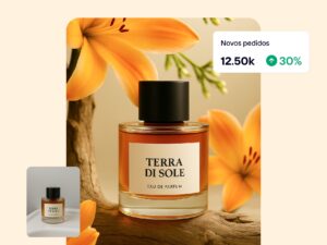 - Embelezador de produtos: otimiza automaticamente luz, cor e contraste para que cada item do catálogo mantenha um padrão estético consistente. O recurso melhora o brilho e a textura sem alterar o produto original, garantindo que a imagem final traduza o melhor aspecto visual possível. É uma forma de oferecer fotos com qualidade de estúdio, mas em escala corporativa, reforçando a confiança do consumidor e a identidade da marca.
